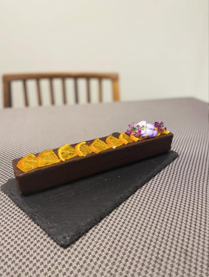 ヴァローナのチョコレートを使用し、低温で焼き上げた生チョコに近いテリーヌです。